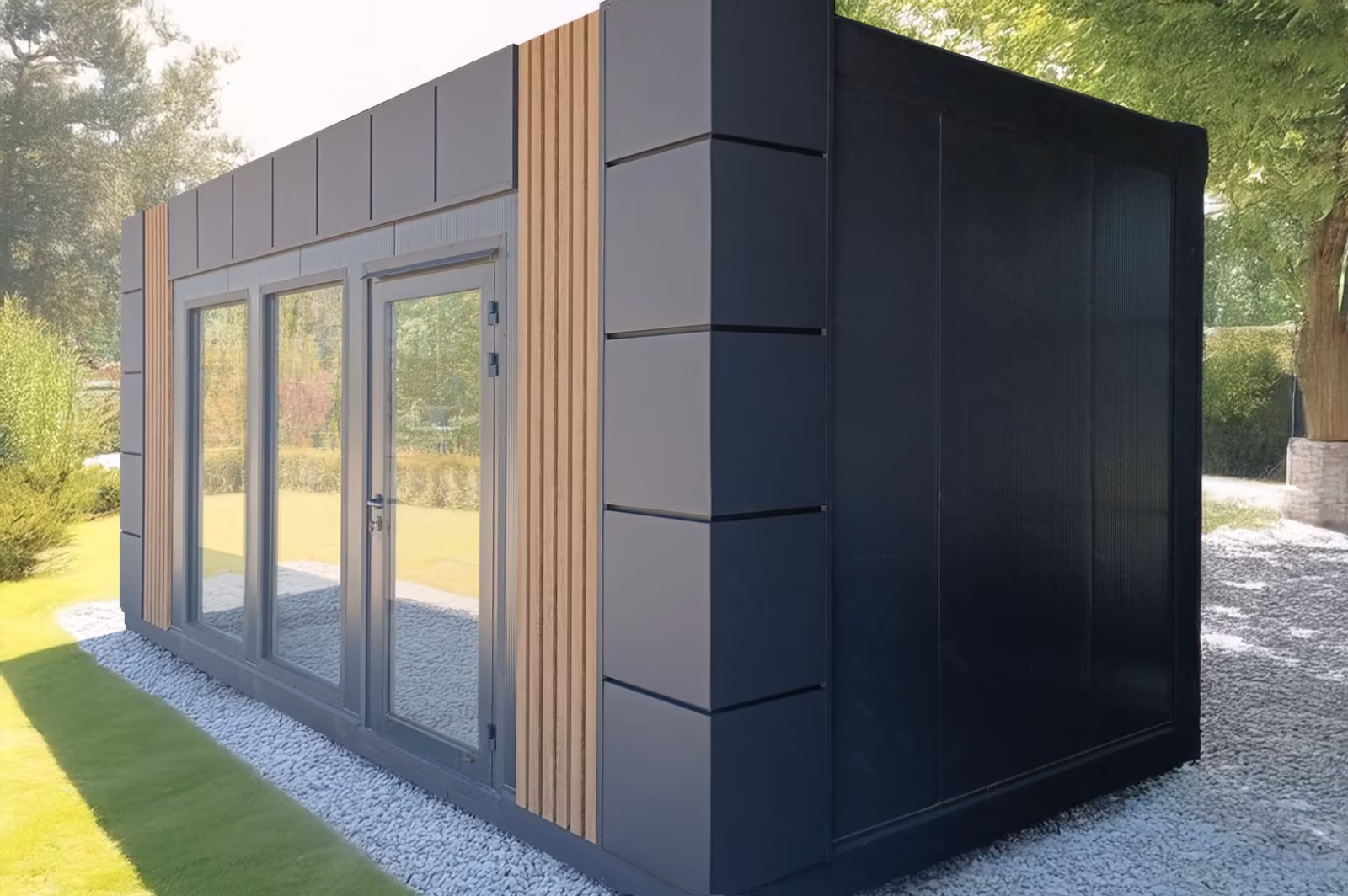 zwei Fenster im Preis an der Vorderwand, zwei zusätzliche Fenster an den Seitenwänden 3m gegen Aufpreis