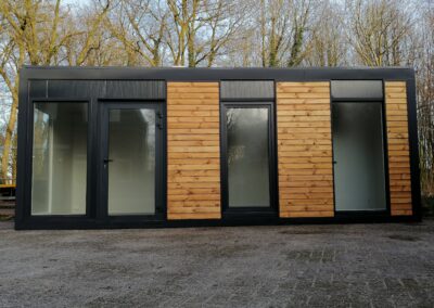 Der Pavillon besteht aus Sandwichelementen mit einem 100 mm dicken Schaumkern. Feuerhemmendes Polystyrolschaum mit Feuerwiderstandsklasse E60 – RAL 7016 Anthrazit (Graphit) – . Styropor nicht brandausbreitend mit Feuerwiderstandsklasse E60: RAL-Außenfarbe zu bestimmen.