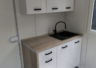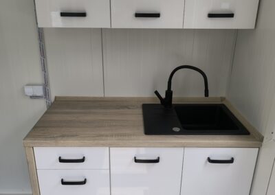 Zusätzlich können wir Ihnen eine Raumunterteilung im Container anbieten, wie z.B ein komplett ausgestattetes Badezimmer mit Dusche, Waschbecken, Toilette oder eine Küche mit bereits eingebauter Küchenzeile.
