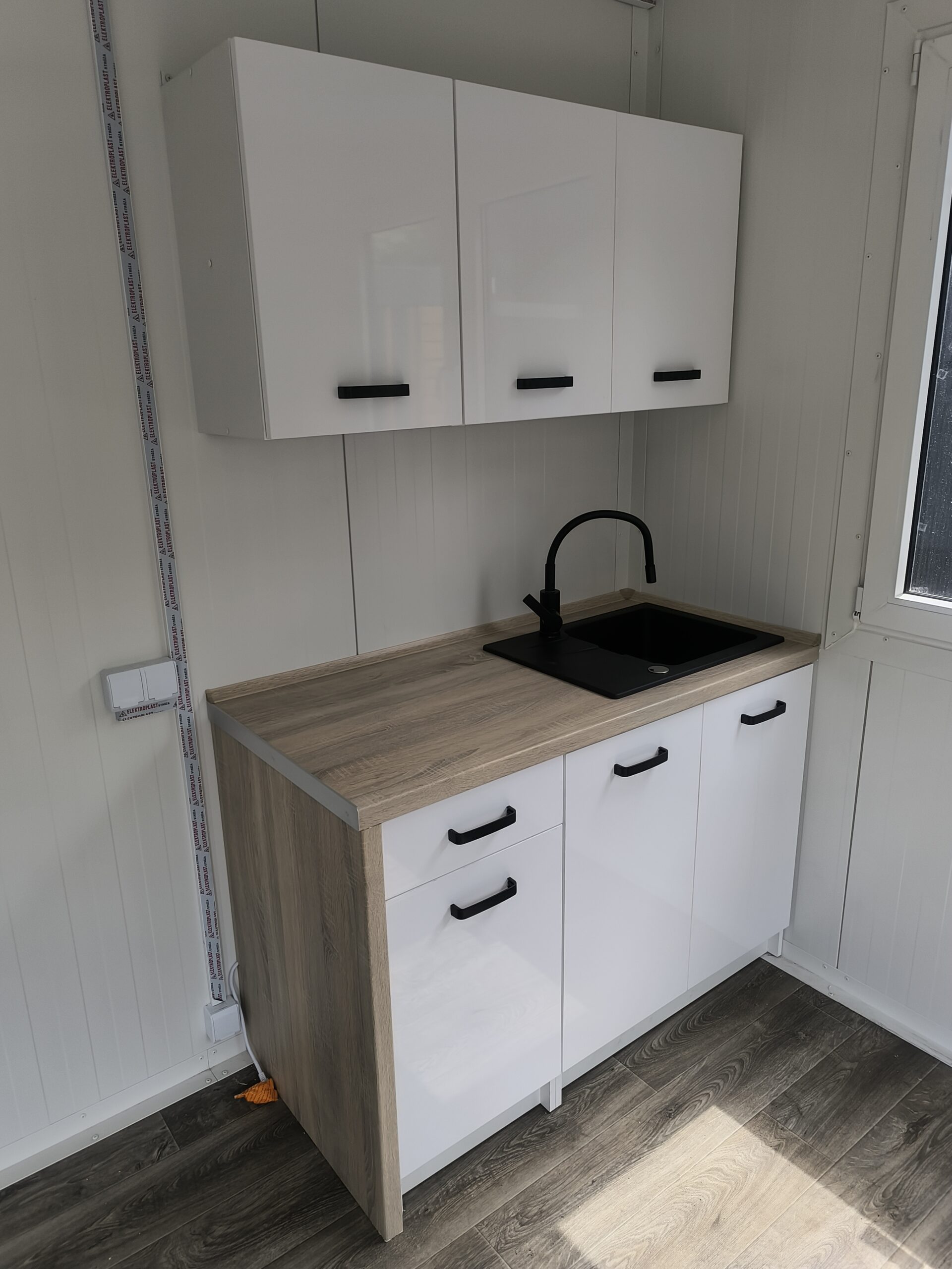 Im Preis inbegriffen ist die Elektrik (Sicherungskasten, Deckenleuchten, Doppelsteckdosen, Schalter).