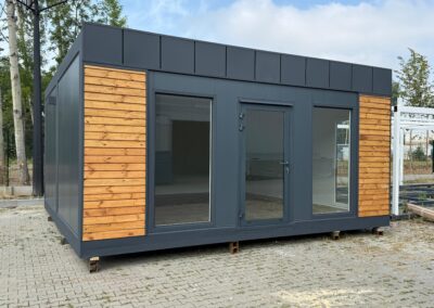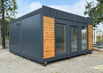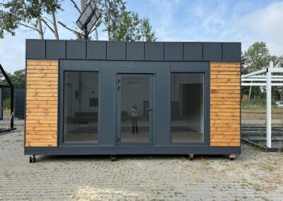 Zum Kauf steht eine 600x600cm zeitlos moderne und ganzjährige Büro- und Wohn- Containeranlage.