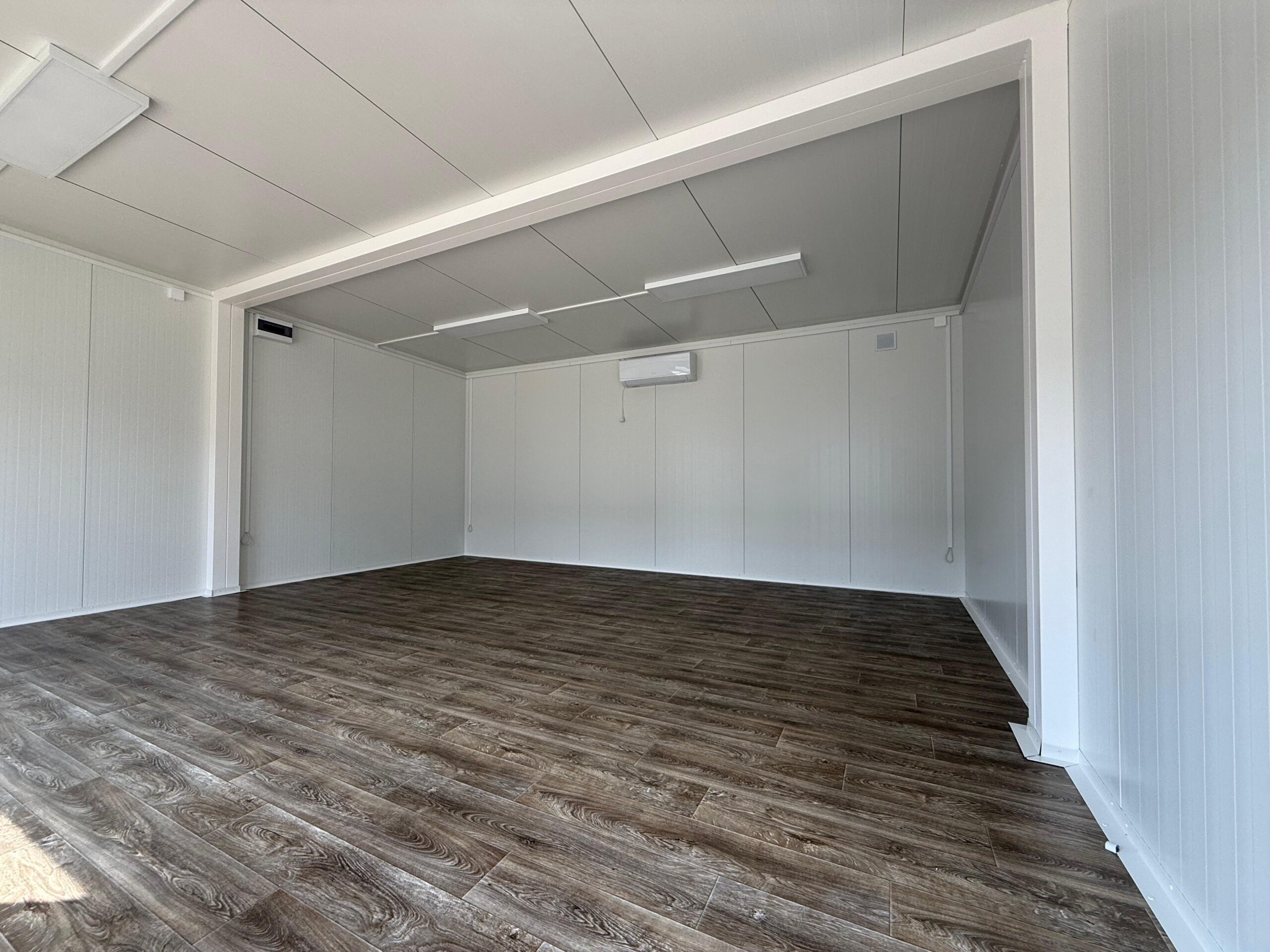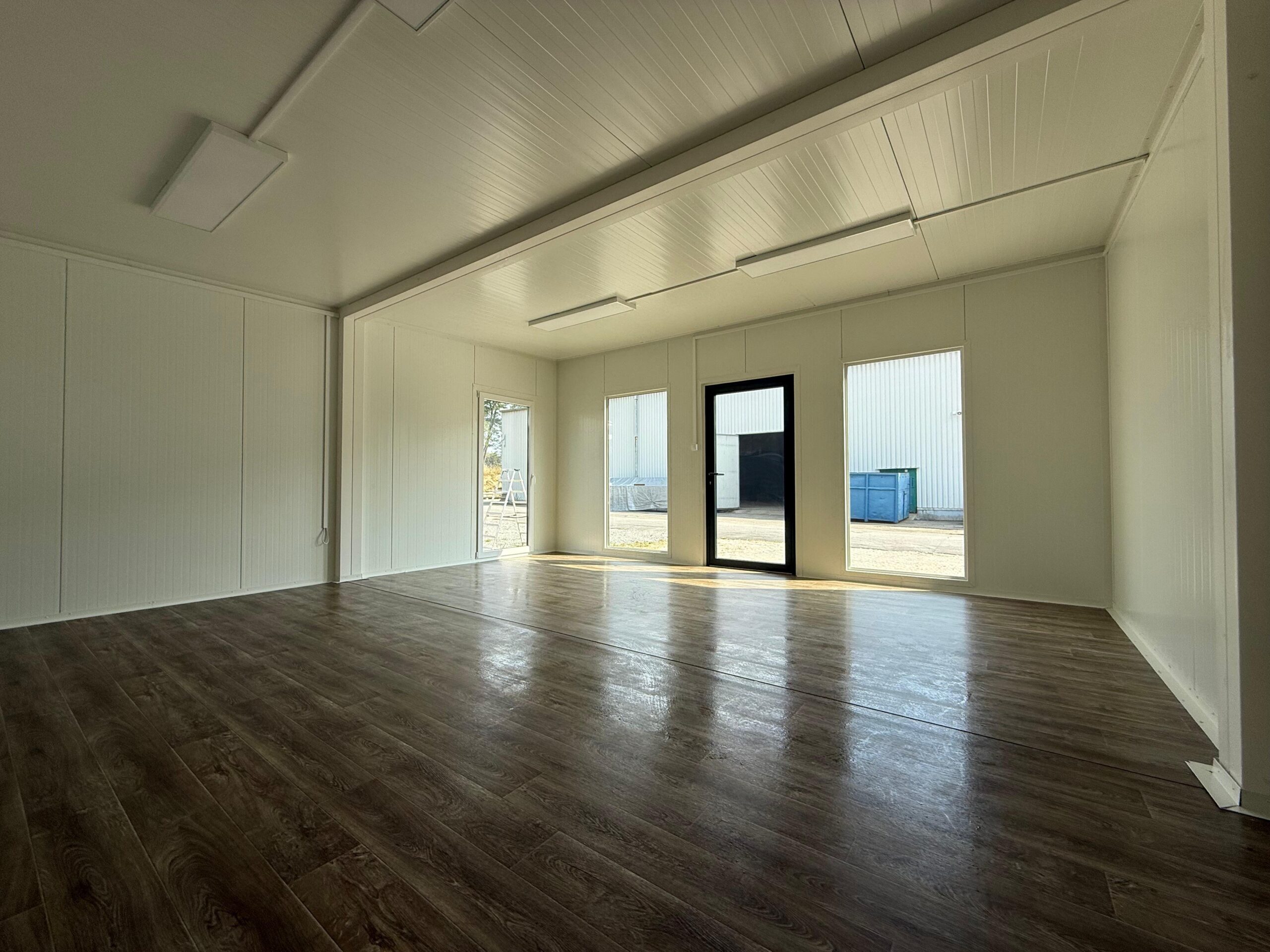 Der Boden besteht aus Sandwichelementen mit einem Kern aus 100 mm Polyurethan. Wärmedurchlässigkeit 0,21 W / m2K. Feuerhemmendes Polyurethan mit PVC-Bodenbelag der Feuerwiderstandsklasse E60 OSB 12 mm.
